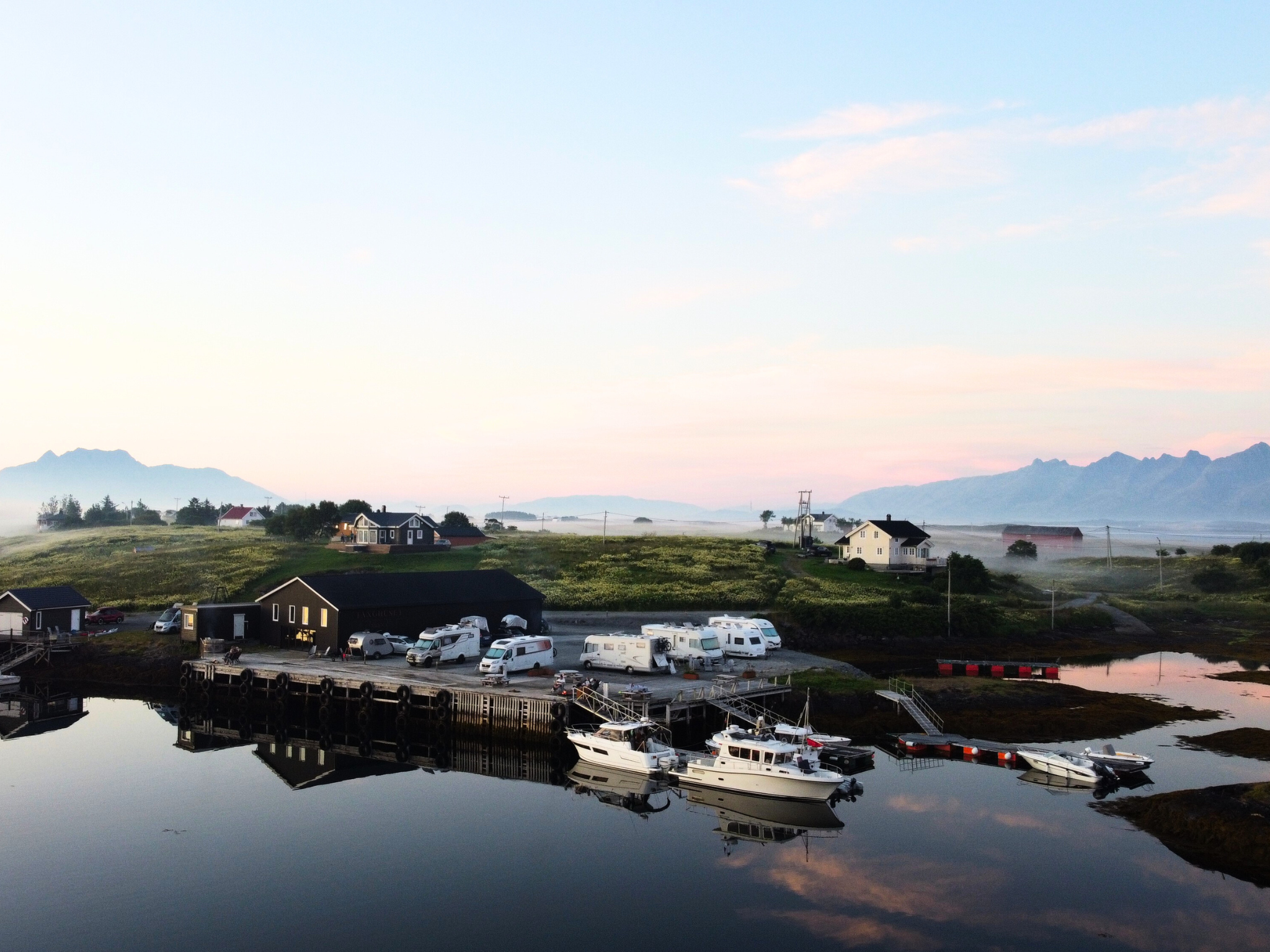 Vi tilbyr 25 oppstillingsplasser for bobil og campingvogn, alle med nydelig sjøutsikt. Her kan du nyte roen i vakre omgivelser, med moderne fasiliteter lett tilgjengelig: